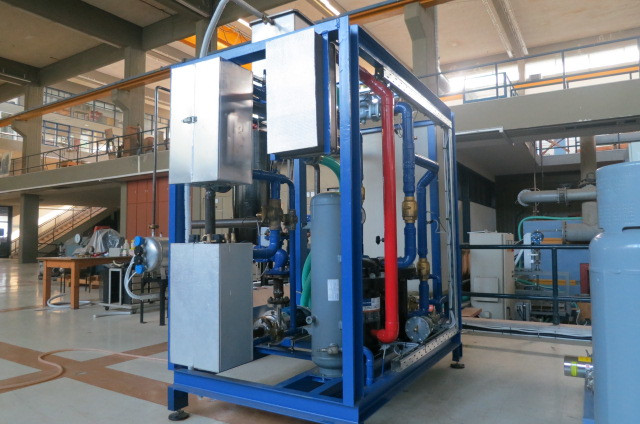 Κατασκευή μηχανής ORC δύο βαθμίδων με εκτονωτές τύπου scroll εν σειρά για τη μετατροπή θερμικής ενέργειας προερχόμενης από πεδίο συλλεκτών κενού σε ηλεκτρική ενέργεια. Η θερμοκρασία σχεδιασμού της μηχανής είναι 130 oC και η ονομαστική ηλεκτρική ισχύς 12 kW. Η παραγόμενη ισχύς αποδίδεται σε σύστημα αφαλάτωσης με αντίστροφη όσμωση για την παραγωγή πόσιμου νερού θαλασσινό.